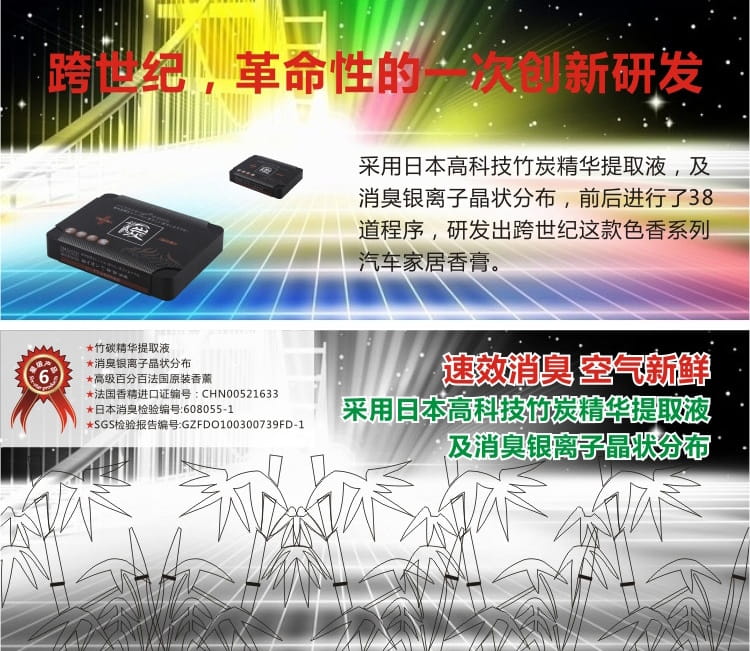 產品特點:吸味碳盒-汽車香膏采用日本高科技竹炭精華提取液及消嗅銀離子晶狀分布,可以祛除汽車內、室內的嗅味、異味,消滅細菌,凈化空氣,營造清新可人的香氛,提神爽氣。本品主要出口歐美、日本、希臘,深受國際喜愛,香調優雅,品位高檔,包裝精美,可作為禮品贈送,氣度非凡。